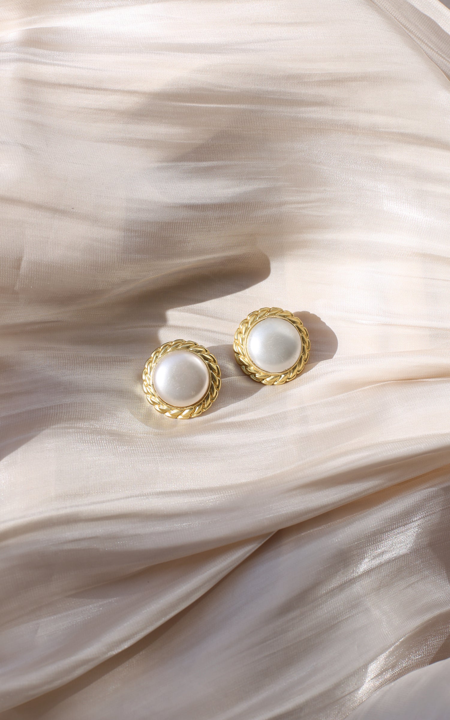 Gaia is timeless, polished, and effortlessly wearable. These vintage clip-ons feature a luminous pearl center framed by a classic twisted rope border in a rich gold-tone finish—clean, elegant, and perfect for everyday sophistication. A beautiful go-to pair for spring styling, office looks, and soft bridal moments.