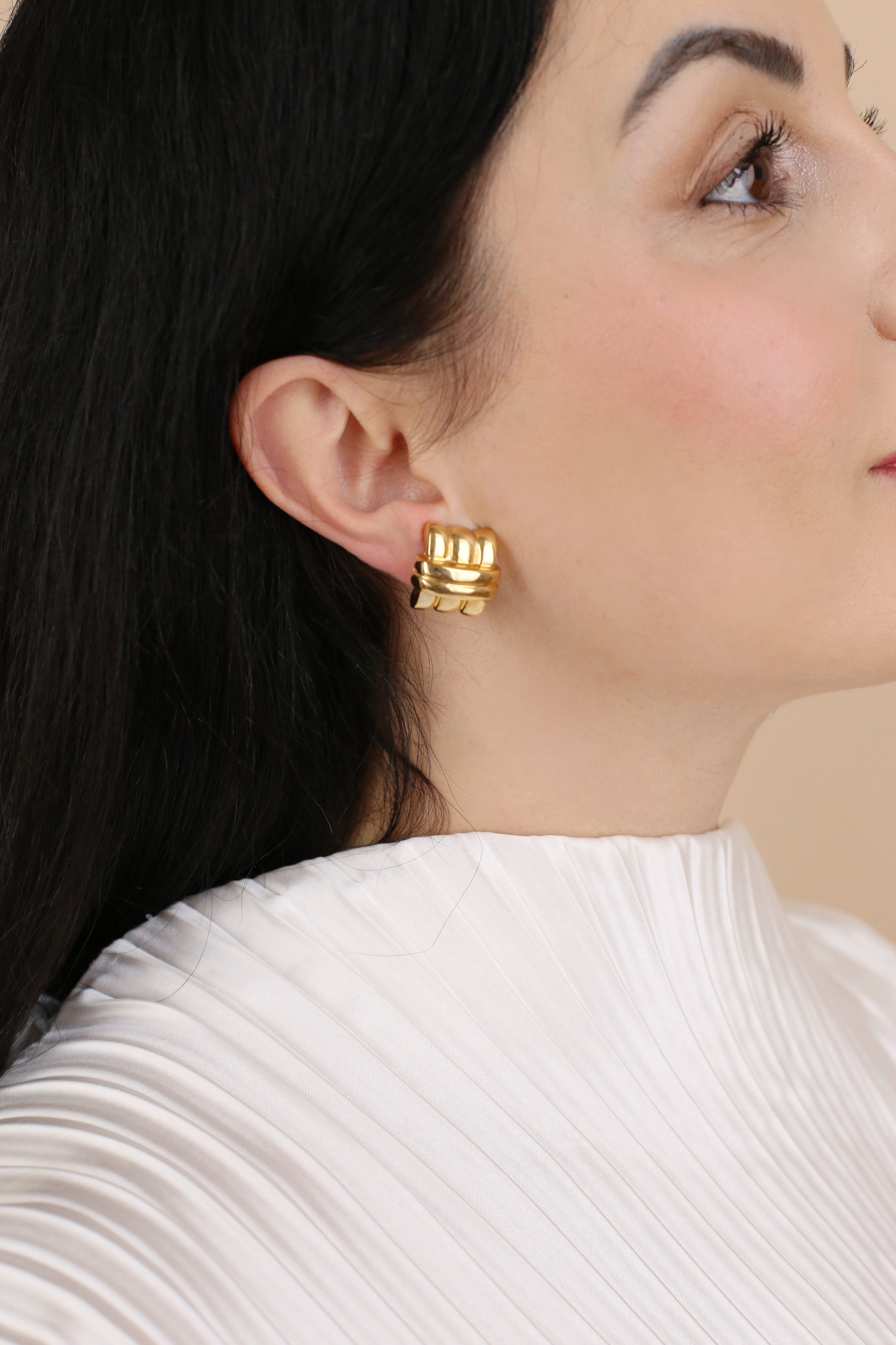 Giselle is small but striking—an elegant vintage staple with a sculptural feel. These clip-ons feature a compact knot-inspired design in a polished gold-tone finish, perfect for everyday wear and effortless layering with other jewellery. Classic, minimal, and timeless.