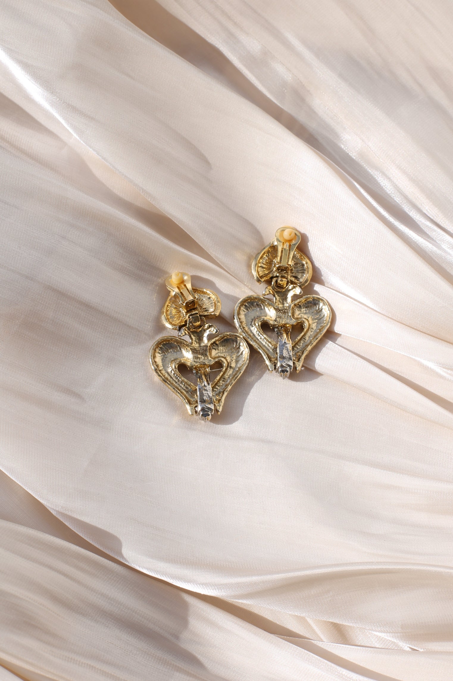 Solène Vintage Heart Drop Clip Earrings