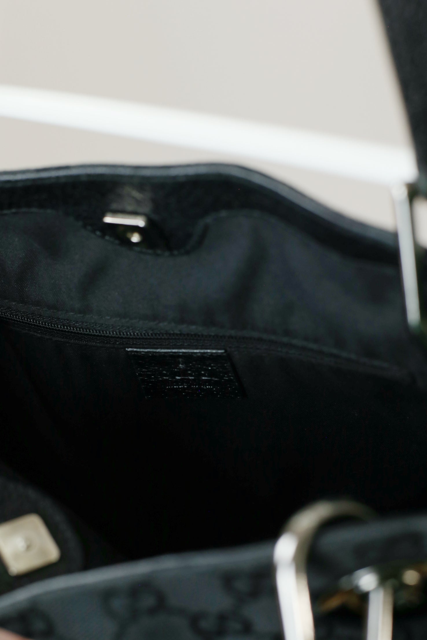 A rare vintage Gucci Logo-Canvas Bag from the Tom Ford era — a striking piece that captures the sensual minimalism of late-1990s Gucci. Crafted in black monogram canvas with leather trims and silver-tone hardware, this bag embodies the sleek confidence that defined Ford’s creative direction. Its structured silhouette and logo detailing make it an effortless companion from day to night.